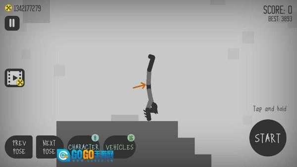 1、进入游戏,对游戏的主要操作就是三个按钮,左下角的最左边二个按钮,是切换不同的姿势的,右下角的‘START’开始按钮,