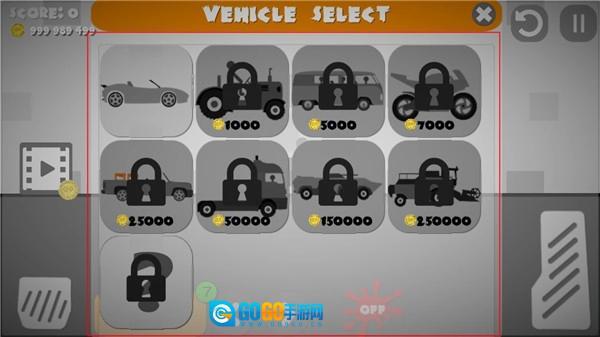 7、这就是购买车辆的页面,每种车需要不同数量的金币,有足够的才能买对应的车,当然越贵的车,受伤指数会越大的,点击能购买的车,弹出确认框,点击‘OK’就可以了,