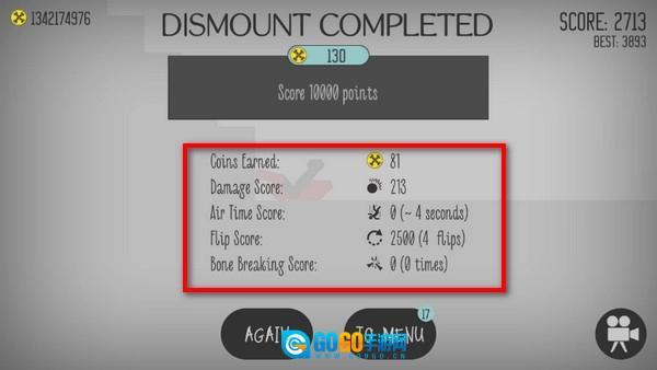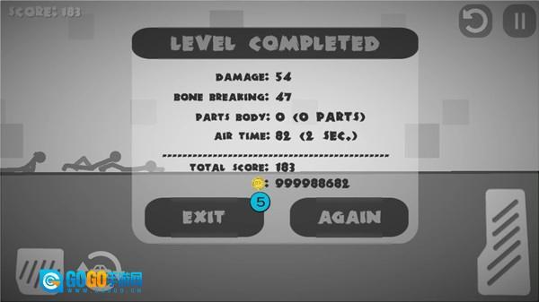 点击下方的“AGAIN”按钮,是重新开始该关卡