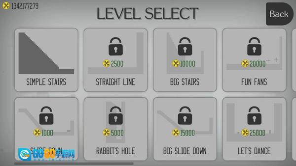 5、关卡页面如图,除了第一关,其他的关都需要有足够的金币才能解锁,我们可以重复玩第一关,获取到足够的金币,才能解锁第二关,