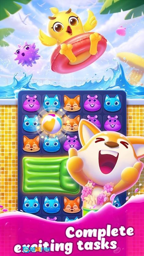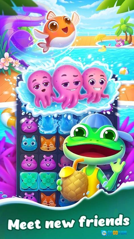 夏日之友消除是一款超级刺激有趣的休闲益智游戏。画风很Q萌。在夏日之友消除游戏中,玩家可以看到许多不同的小动物。你所要做的就是一起移动相同动物的方块来消灭它们。每次消灭的方块越多,能得到的点数和金币就越多。完成指定任务后可以解锁更多关卡~
