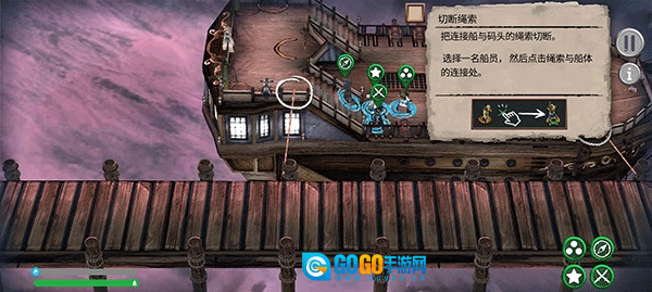 把这些船员全部移动到船上之后,我们需要切断绳索进行航行了。