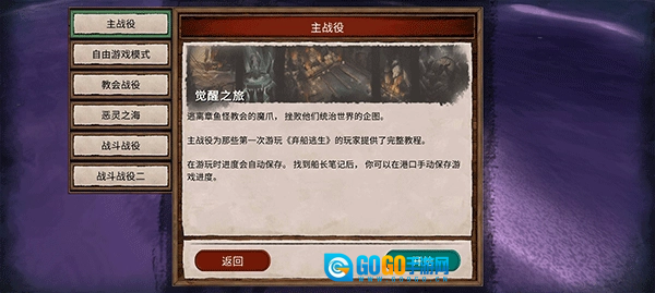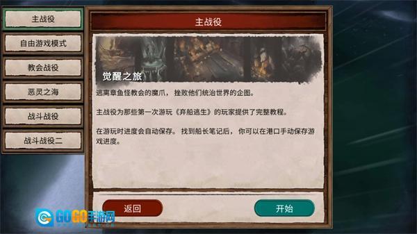 在这里我们有多种游戏模式选择,如主战役、自由游戏模式、教会战役模式、恶灵之海战役模式等等。
