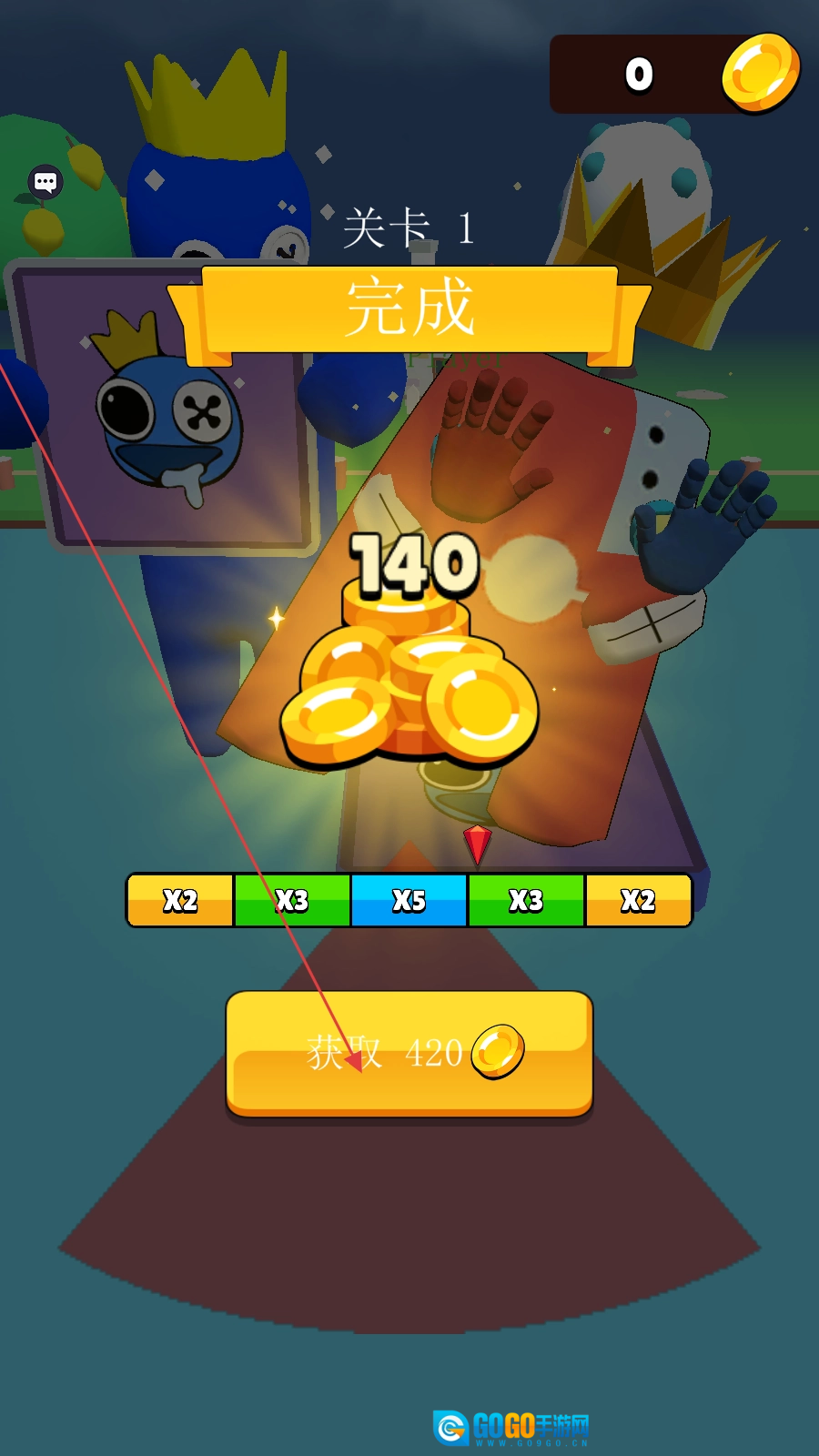 通关后点击【获取420金币】,领取奖励,积累资源。