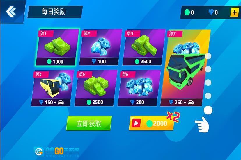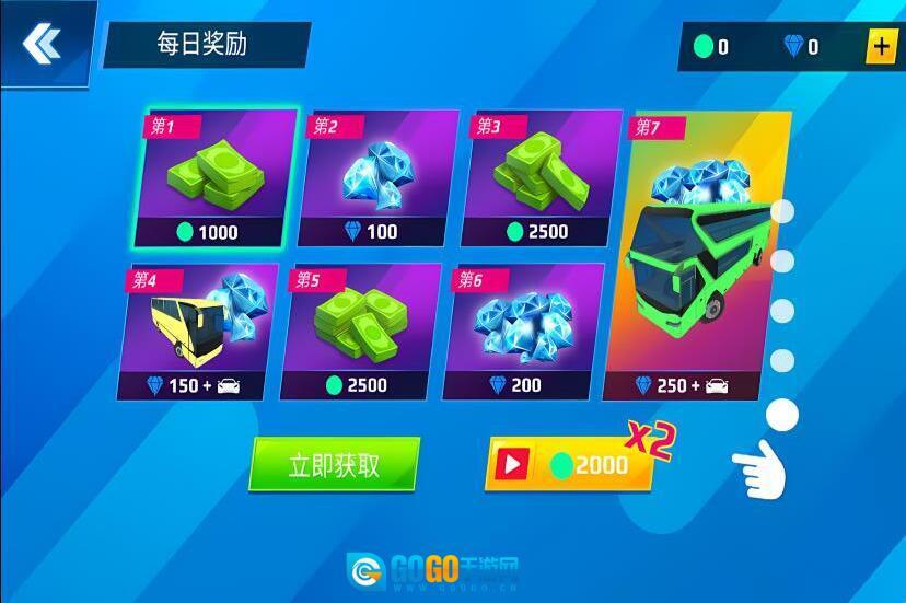 2、在轨道1、轨道2、轨道3里解锁并挑选赛道,驾驶巴士在赛道上飞速驰骋。