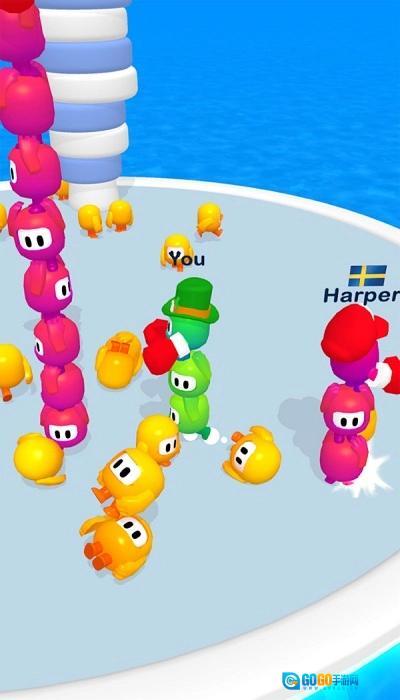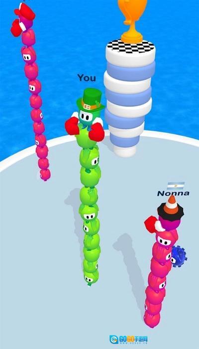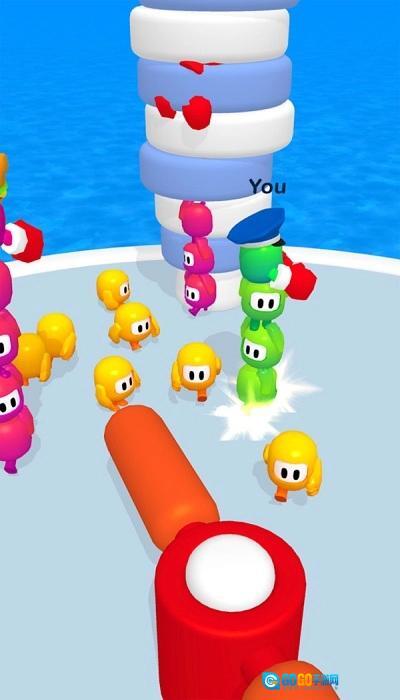 进入游戏,滑动屏幕操控角色移动,去收集黄色的同伴,让自己的叠叠乐变高,壮大实力。