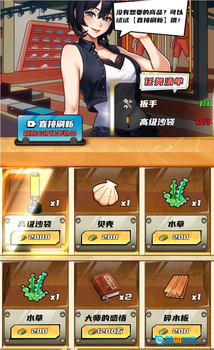 在超市购买自己需要的材料,没有遇到的话可以通过看广告的方式刷新(比得)。