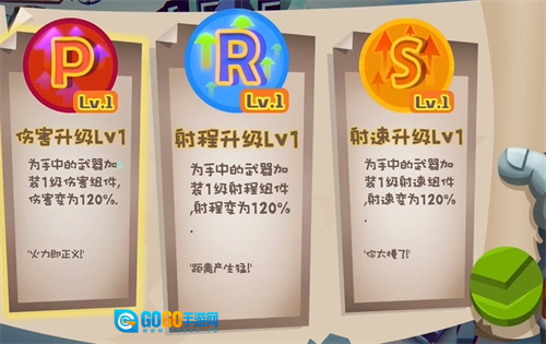 消灭一波敌人之后可以选择武器,从而让你的攻击拥有相应的加成;