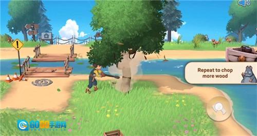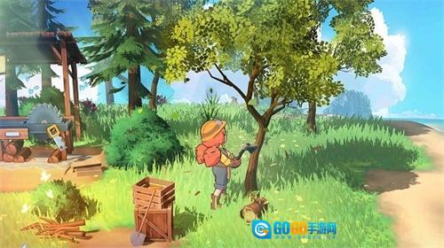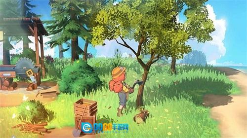 玩家根据所需的材料类型前往对应场景进行材料收集,例如木材可以寻找树木,点击对应交互按钮进行收集;