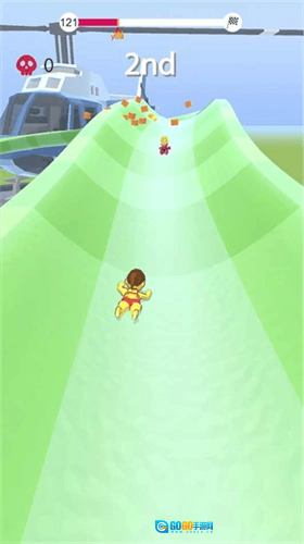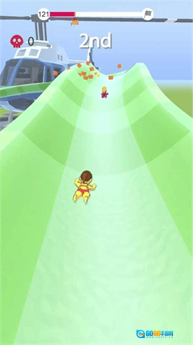 通过左右划动的方式控制角色进行横向移动,玩家需要注意躲避沿途的障碍并完成闯关;