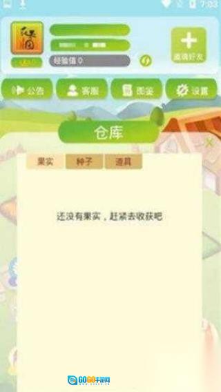 2、进入仓库界面后,点击【邀请好友】按钮,通过分享游戏邀请好友助力,即可获得种子、道具等相应奖励。