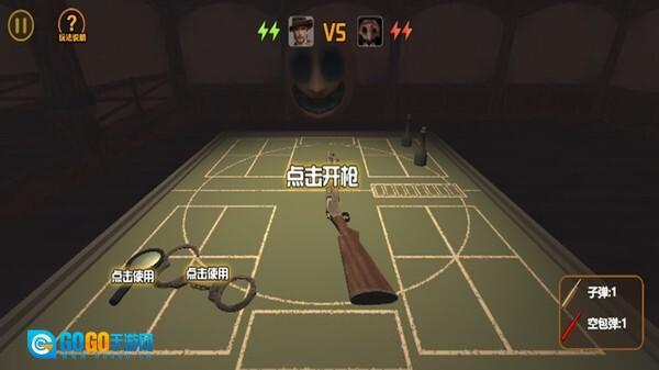 这里一共有三个关卡,难度依次递增。桌面上放着一把枪和若干发子弹,这些子弹有实弹和空弹之分。