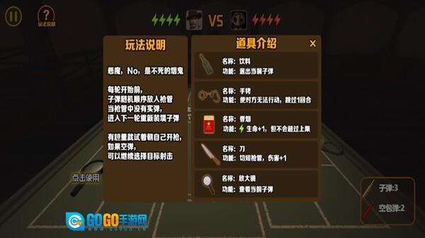 4、我们和恶魔都要判断下一发子弹是实弹还是空弹,并且得决定是朝自己开枪还是朝恶魔开枪。要是对恶魔发射实弹,就能扣除恶魔一格生命值;要是对自己发射空弹,就可以额外获得一回合行动机会。