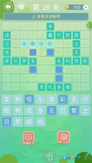 游戏了丰富的汉字资源库,还设有精心设计的话题关卡,十分考验玩家的成语积累量。