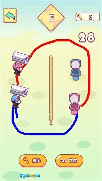基础操作是通过手指滑动来绘制线条,以此搭建出通往厕所的路径。
