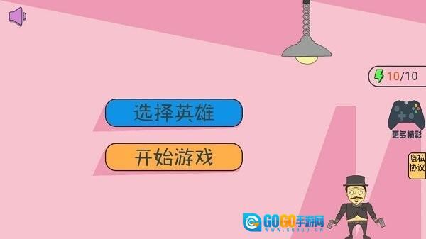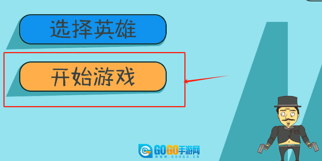 1、蓝色选项用于切换英雄角色,橙色的开始游戏按钮已标红,直接点击即可开始游戏。