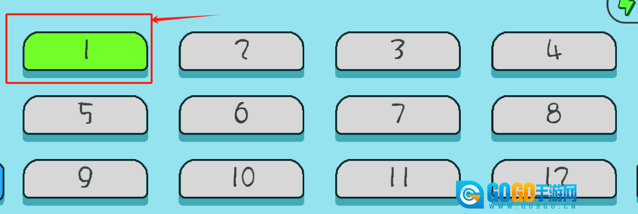 2、绿色的数字1按钮亮起并被框选,按下它大概率是用于确认操作或者进入下一关,其余灰色按钮暂时无法使用。