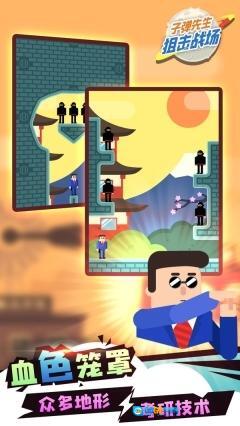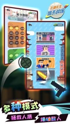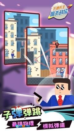 《子弹先生狙击战场》是一款充满趣味的卡通风格射击游戏。游戏里,你将接到一项神秘的射击任务挑战——面对敌人、间谍、特工、僵尸、外星人等形形色色的目标,得充分开动脑筋,操控角色在各异的地图场景中冒险闯关。你需要借助独特武器,利用有限的子弹和弹射机制消灭不同目标、解救人质,记得找准角度哦!