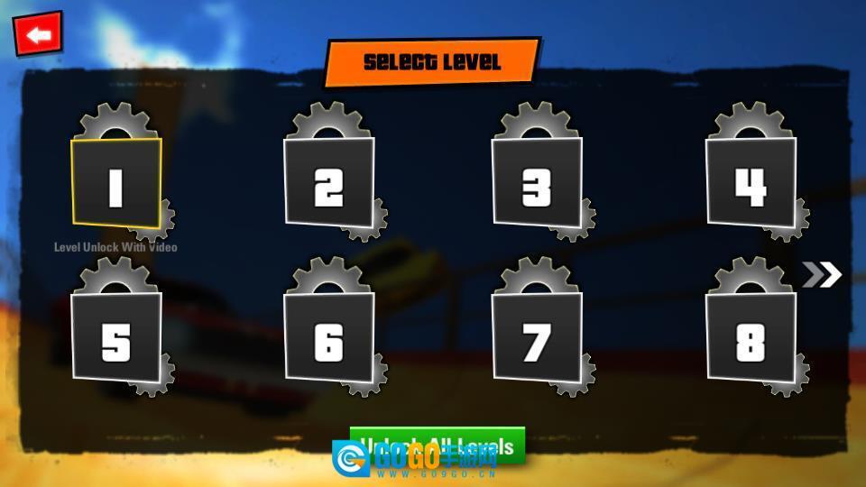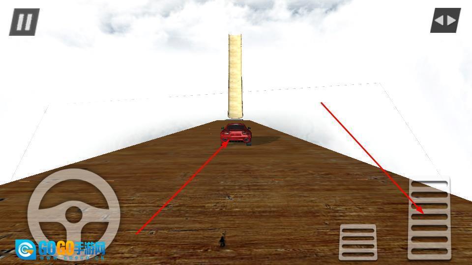 3、驾驶赛车冲向巨型坡道,控制好油门和方向盘,在坡道上全力加速冲刺,完成高空跳跃的特技动作,努力顺利通过整个赛道。