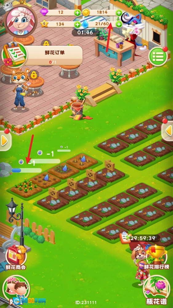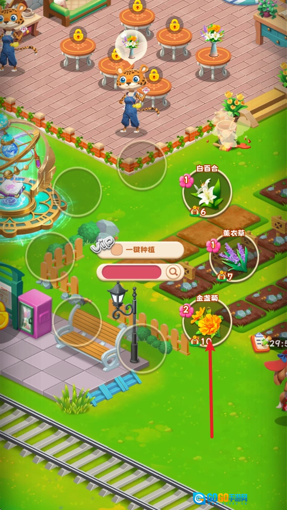 成熟之后,点击花朵旁的篮子即可一键收取。