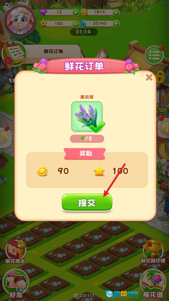 有对应的花朵就可以直接提交,完成订单。