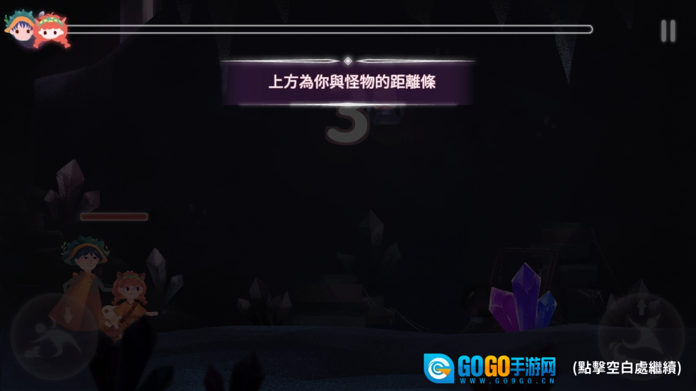 屏幕上方显示的是你和怪物之间的距离条,一旦被身后的怪物碰到,挑战就会失败。