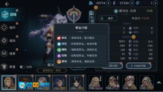 在游戏里,总共有五个不一样的职业,它们分别是单攻、坦克、辅助、控制和群攻。