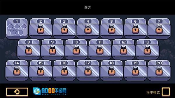 不同地图包含各自的关卡,解锁规则一致;若担心操作能力不足,可选择界面右下角的简易模式选项。