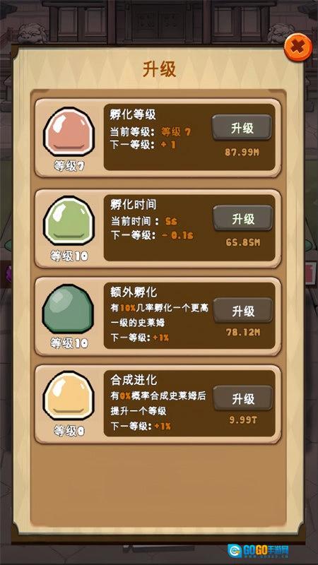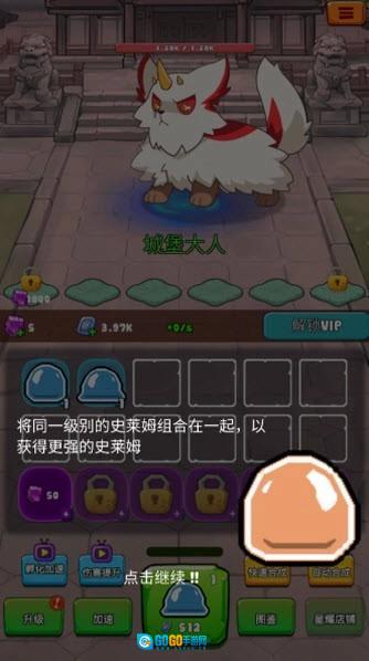 把同一级别的史莱姆合并起来,就能得到更强大的史莱姆。