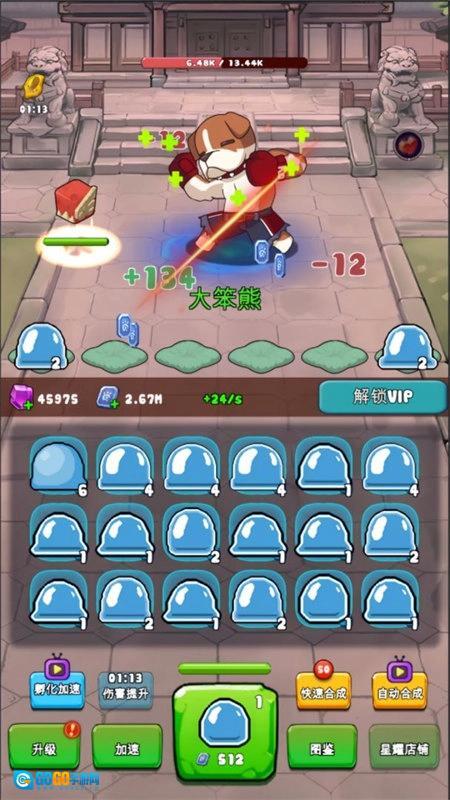 不断合成升级,击败所有怪兽。