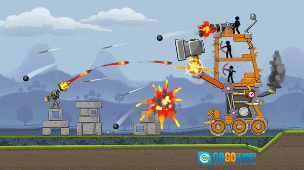 游戏需要你找出敌人建筑的薄弱之处,锁定目标、开火并将其摧毁!或者直接用威力强劲的弹丸把它击碎!不过得记住!火柴人敌人可是相当危险的。