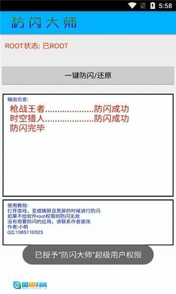 2.点击按钮后会出现闪烁效果。若未向软件授予ROOT权限,反闪功能将无法正常工作。