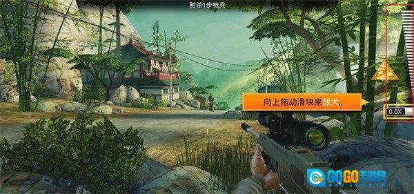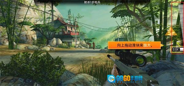 游戏中玩家需要通过向上拖动滑块来放大瞄准;