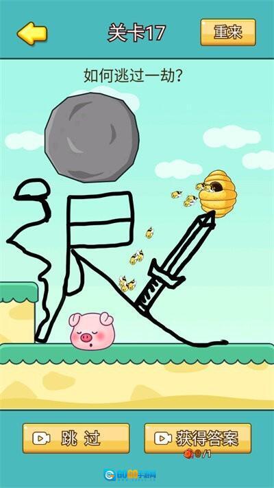 1、点击开始游戏,通过画线拯救猪头的玩法超搞笑,猪猪们的表情实在太有趣了,玩起来让人根本停不下来。