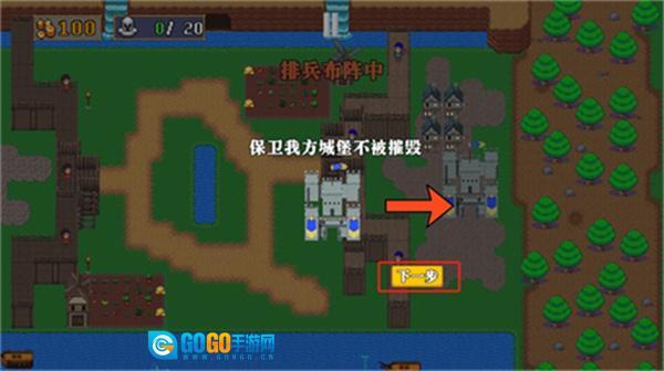 4、完成任务目标后,点击下一步,保护我方城堡。