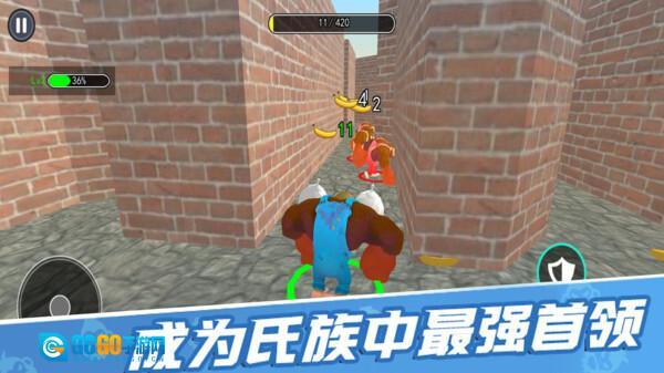 3、场景里有不同等级的其他猩猩,玩家操控的猩猩只能攻击等级比自己低的猩猩,长按屏幕可以蓄力释放特殊技能。