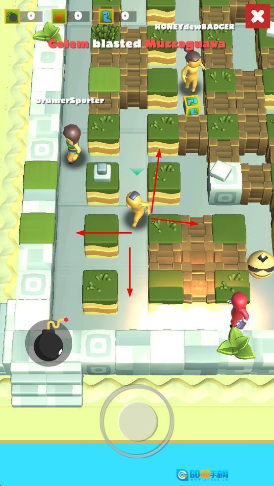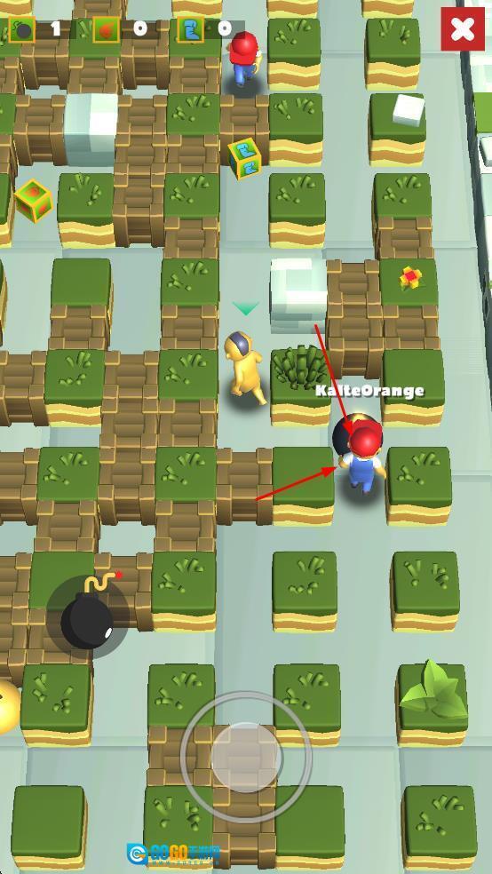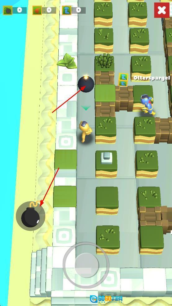 2、点击炸弹按钮来放置炸弹,借助爆炸的效果可以摧毁障碍或者攻击对手,以此积累对战中的优势。