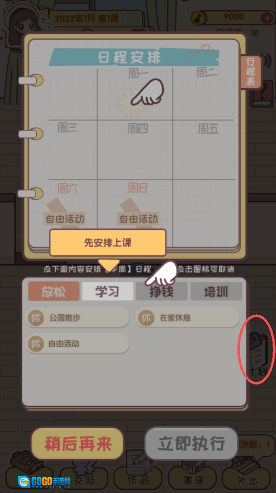 3.按游戏界面右边的计划开始安排角色