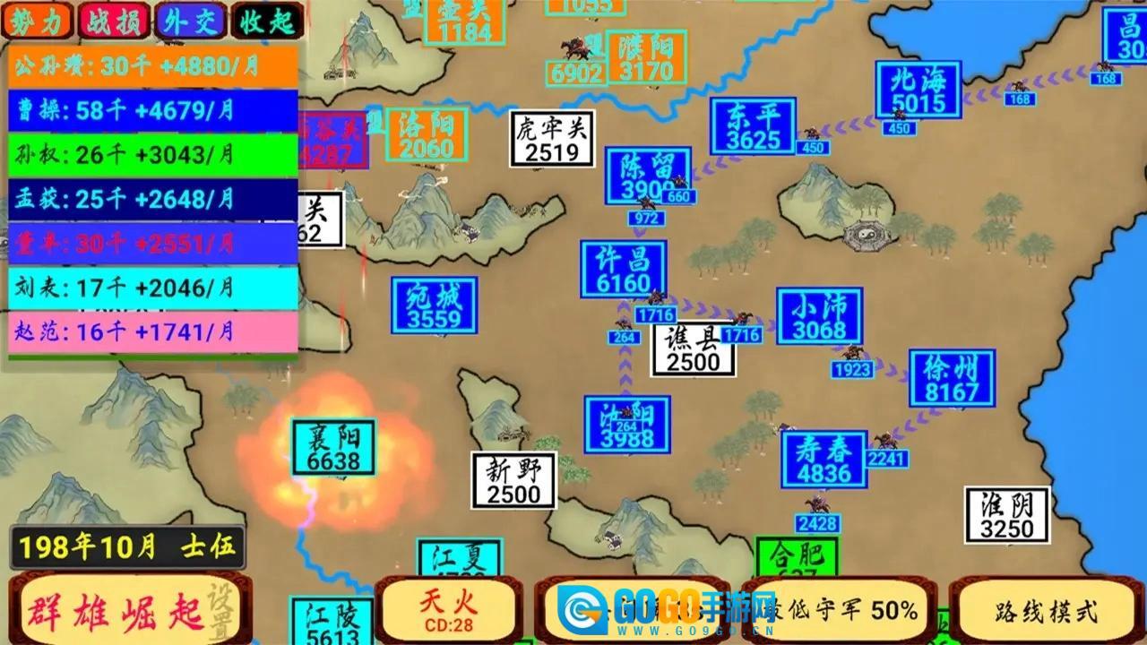 《指划江山》是一款主打国风手绘风格的三国题材战场策略游戏。它创新性地运用滑动指挥系统,玩家只需通过指尖拖拽,就能实时规划行军路线,还能动态调整战略部署;若遇敌军突袭,可即刻切断当前路径或重新绘制进攻轨迹,使瞬息万变的战场指挥过程流畅自如,如同行云流水般顺畅!