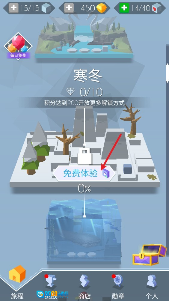 2、第二种方法是点击此处的免费体验按钮,借助观看广告的形式进行临时解锁,待通关之后即可实现永久解锁。