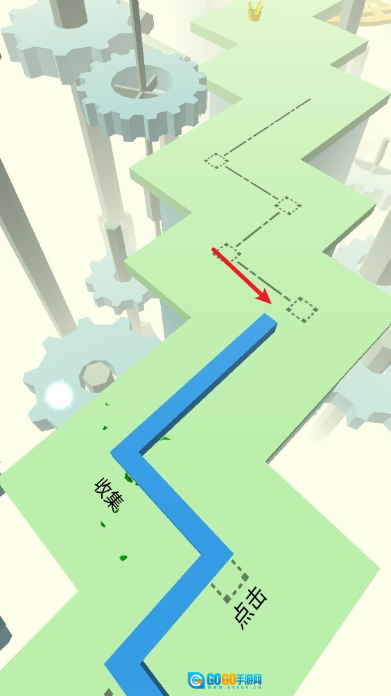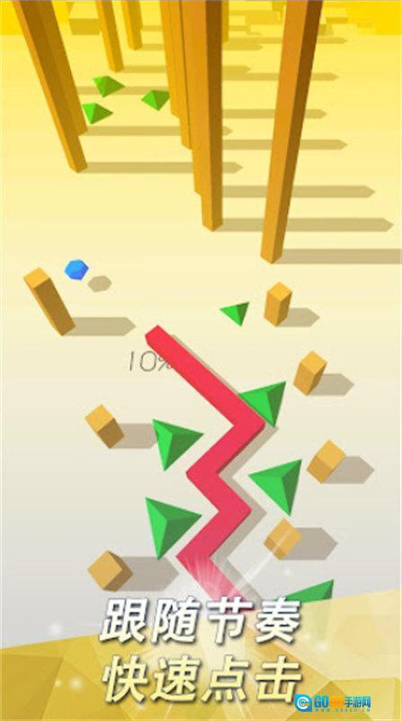 3、游戏里这条线会自动前进,我们得点击屏幕让它改变方向。