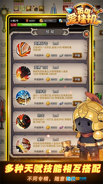 5、这种开局体验很惬意,一路玩到60级都不用中途换英雄重新培养,到了后期升级速度就慢下来了,差不多一天才能升一级