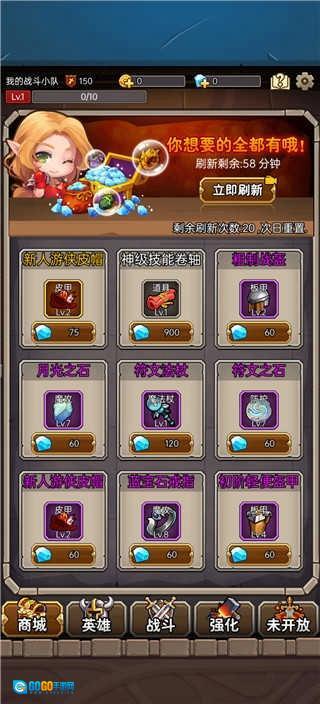 2、游戏里玩家们借助放置操作来增强角色的等级与实力,海量英雄等待你的召唤。