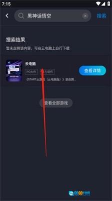2、接着输入“黑神话悟空”,此时你会看到没有相关的搜索结果,但可以选择下方的云电脑选项。