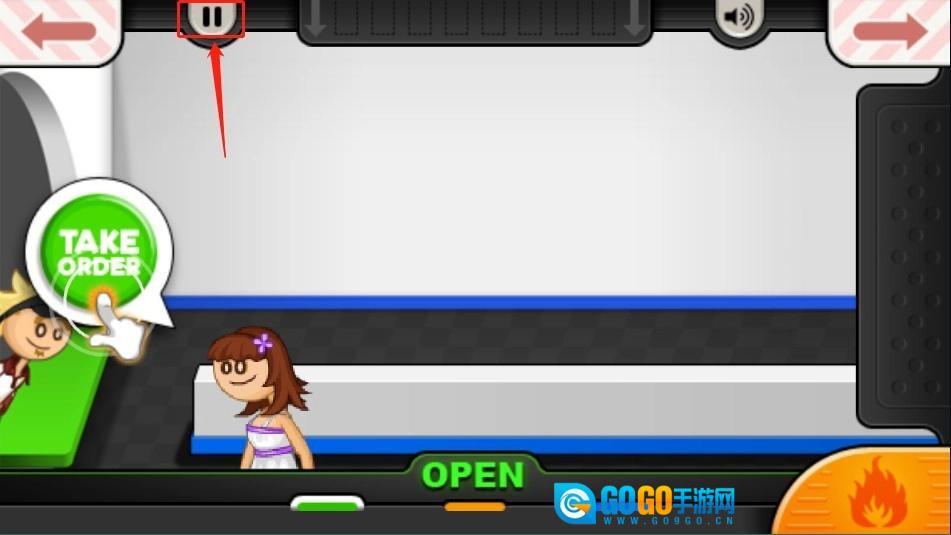 1、在老爹汉堡店里,点击左上方的【暂停】按钮