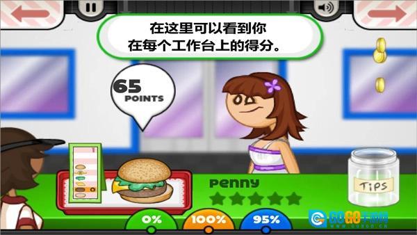 1、采用充满动感的美式漫画卡通风格呈现,让你能全方位体验汉堡制作的乐趣。