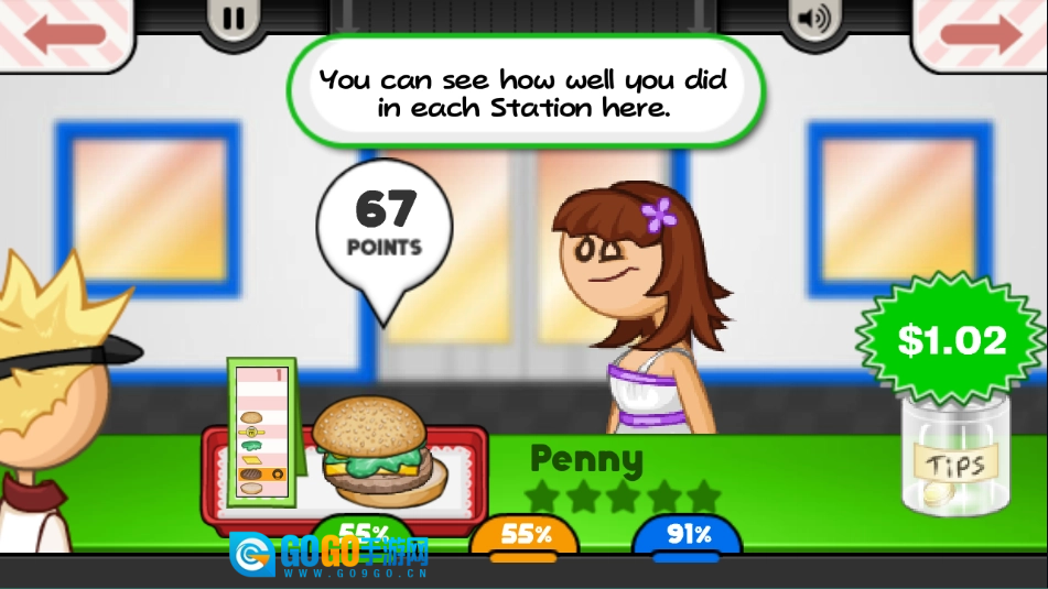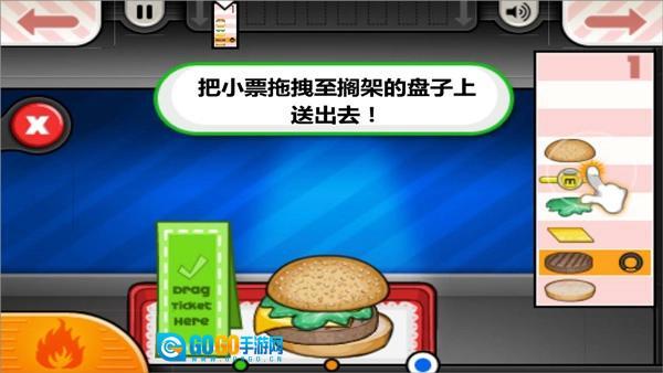 4、接着把小票拖至订单夹处,再将汉堡递给顾客,顾客的评分会对应给予相应的金币。