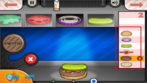 3、前往制作台制作汉堡,按照页面右侧菜单的要求,依次添加所需食材。