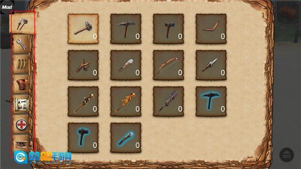 3、玩家能够打开工具栏,利用刚拾取的树枝制作各类武器,用于捕猎或自我保护。
