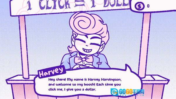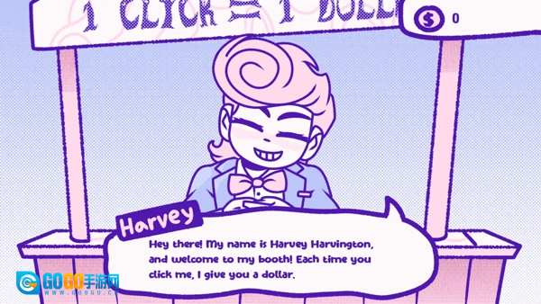 玩家需要点击屏幕上的Harvey Haven来获取收益,初始时每次点击可获得1美元。